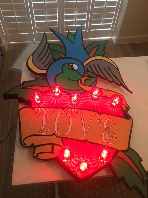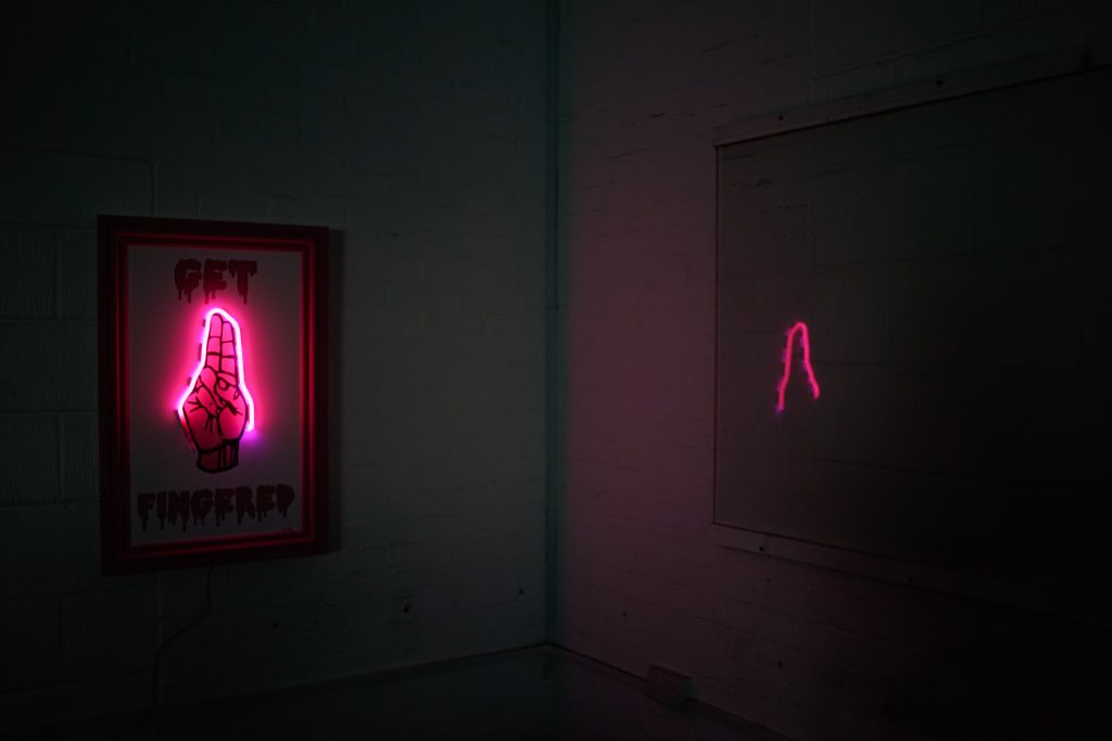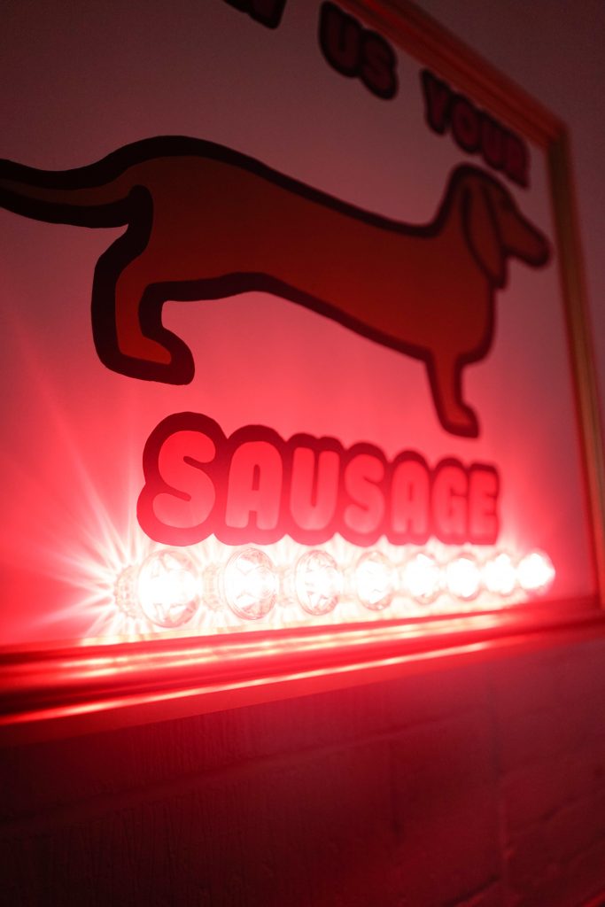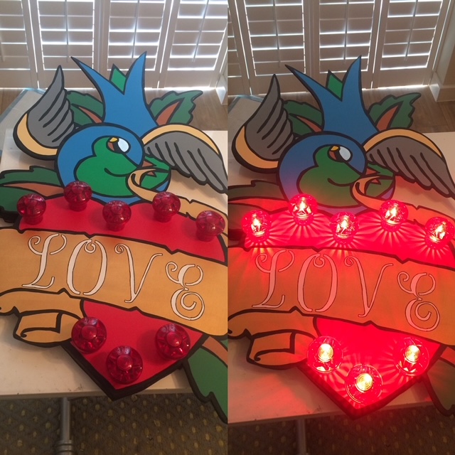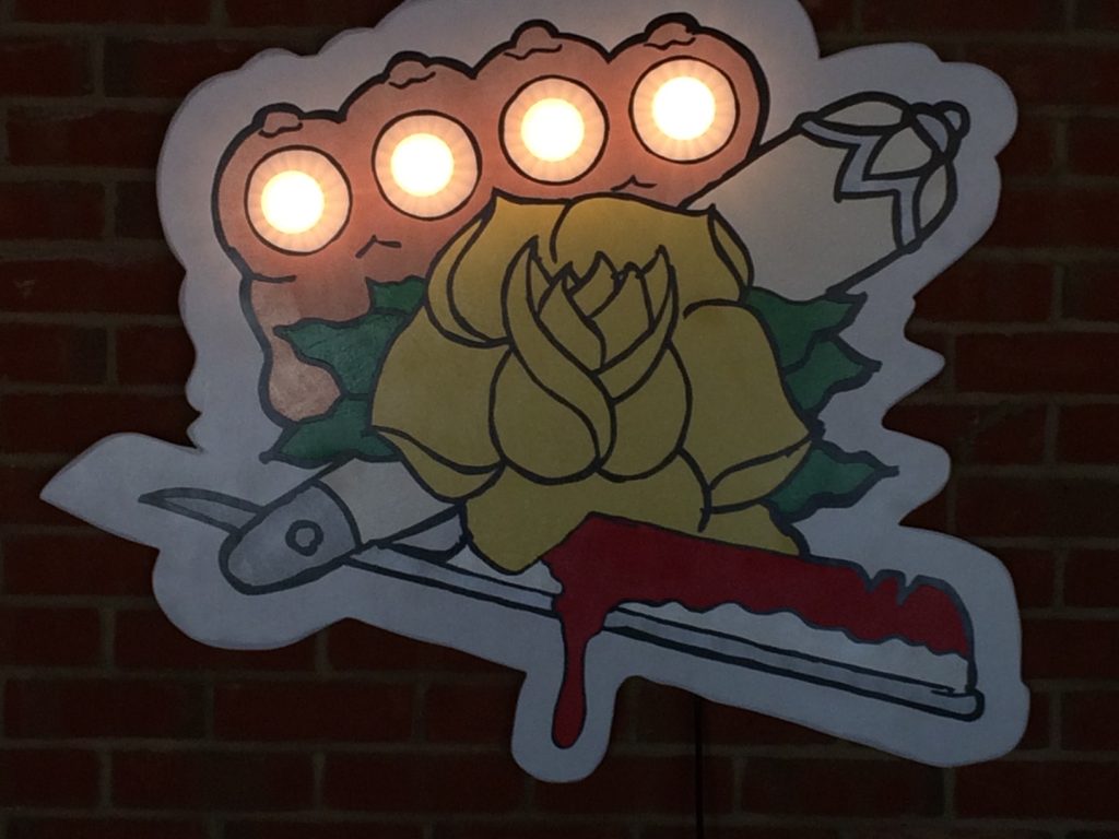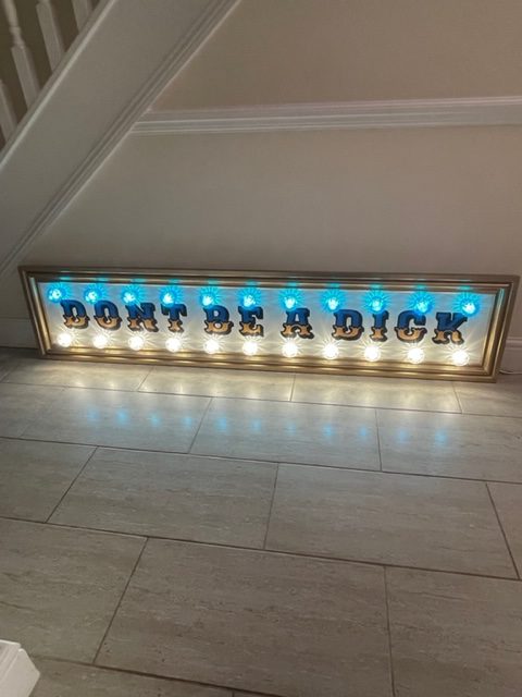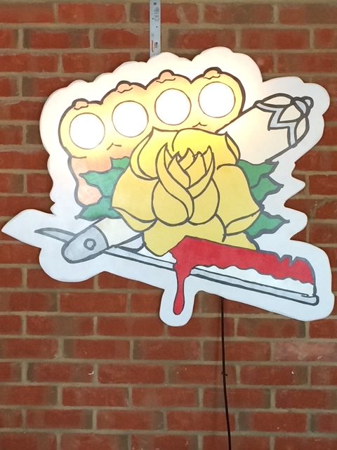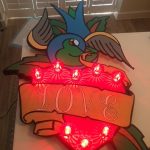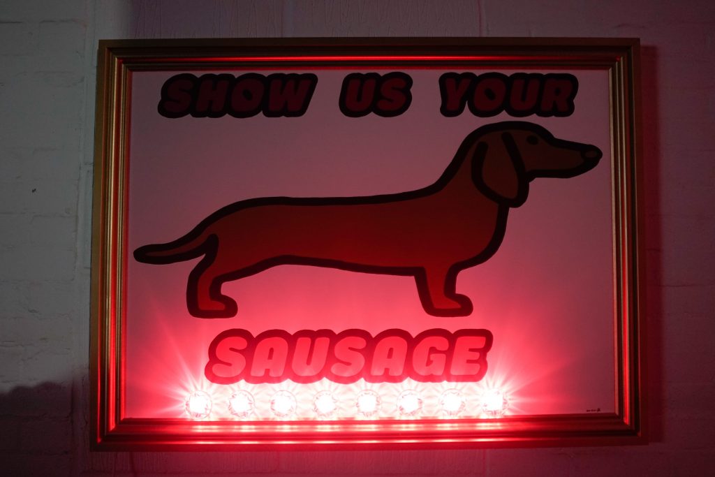 I have a wicked sense of humour and like to think this comes out in my work. I also use L.E.D lights in a lot of my works.