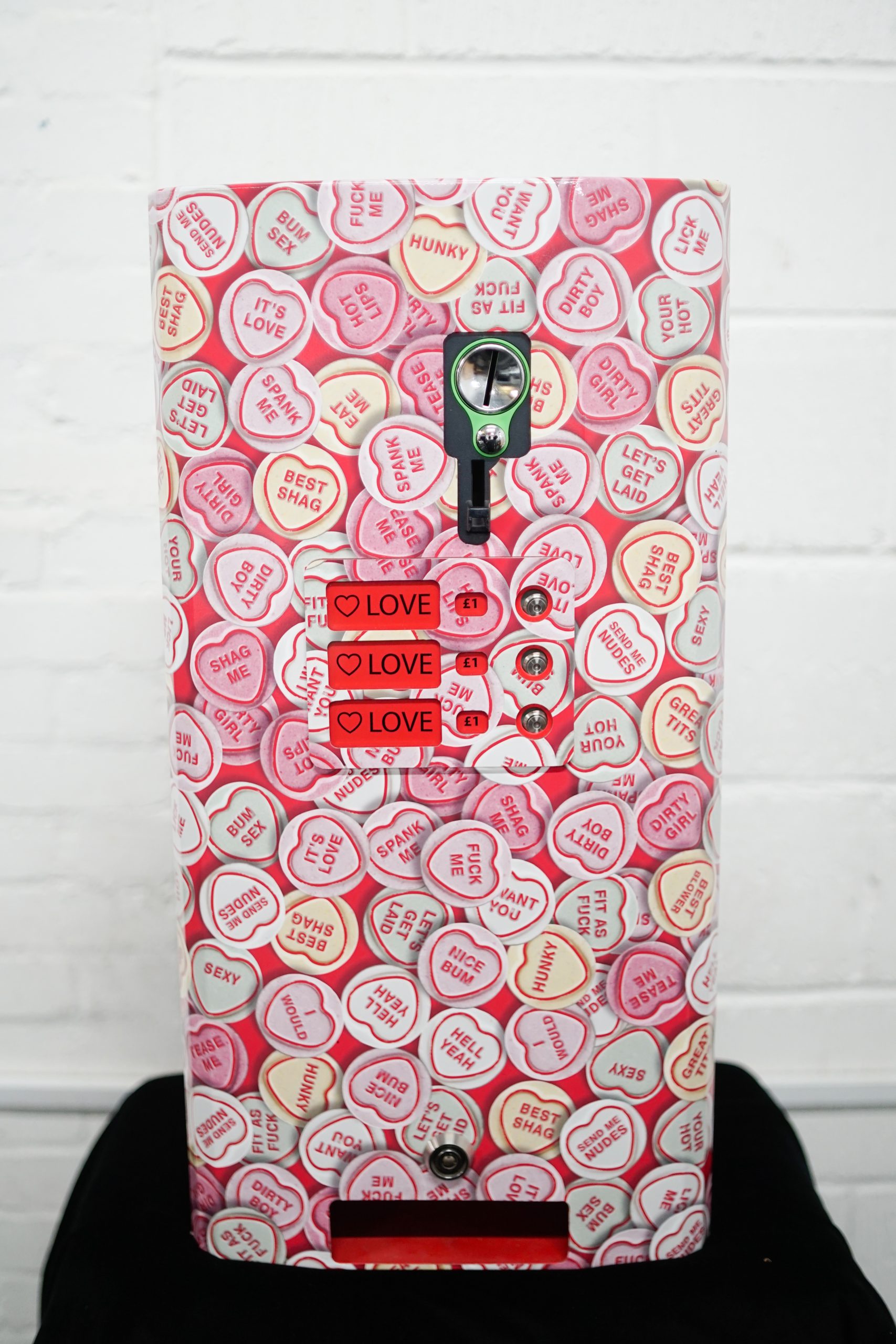 custom x-rated vending machine please study photos carefully- vends two rolls of love hearts for a pound 72 x 36 x 17cm