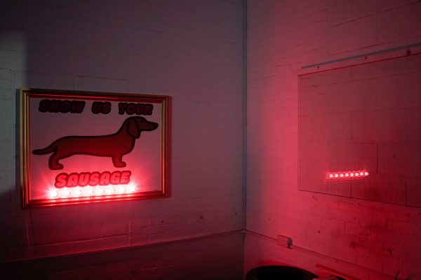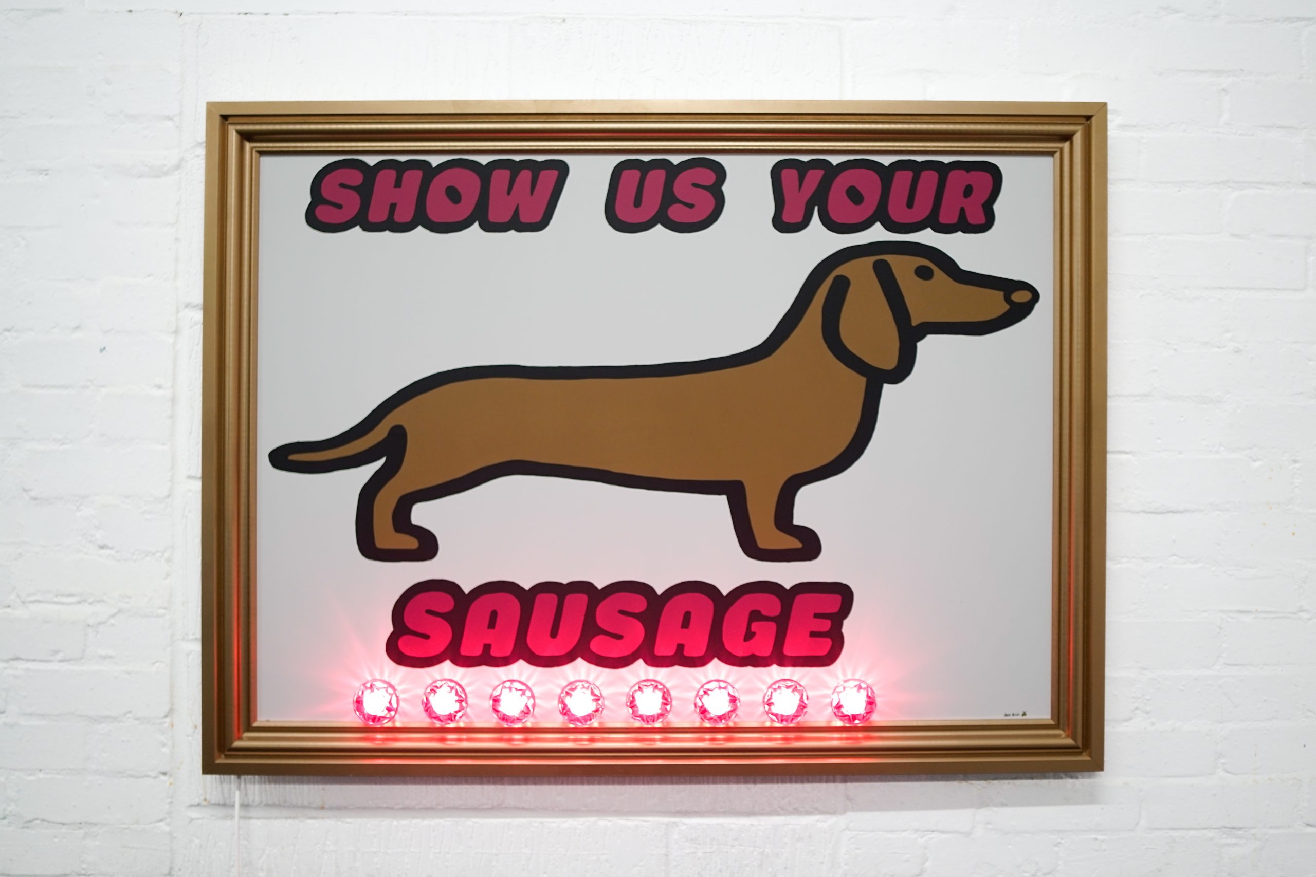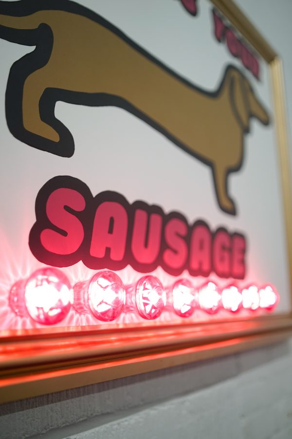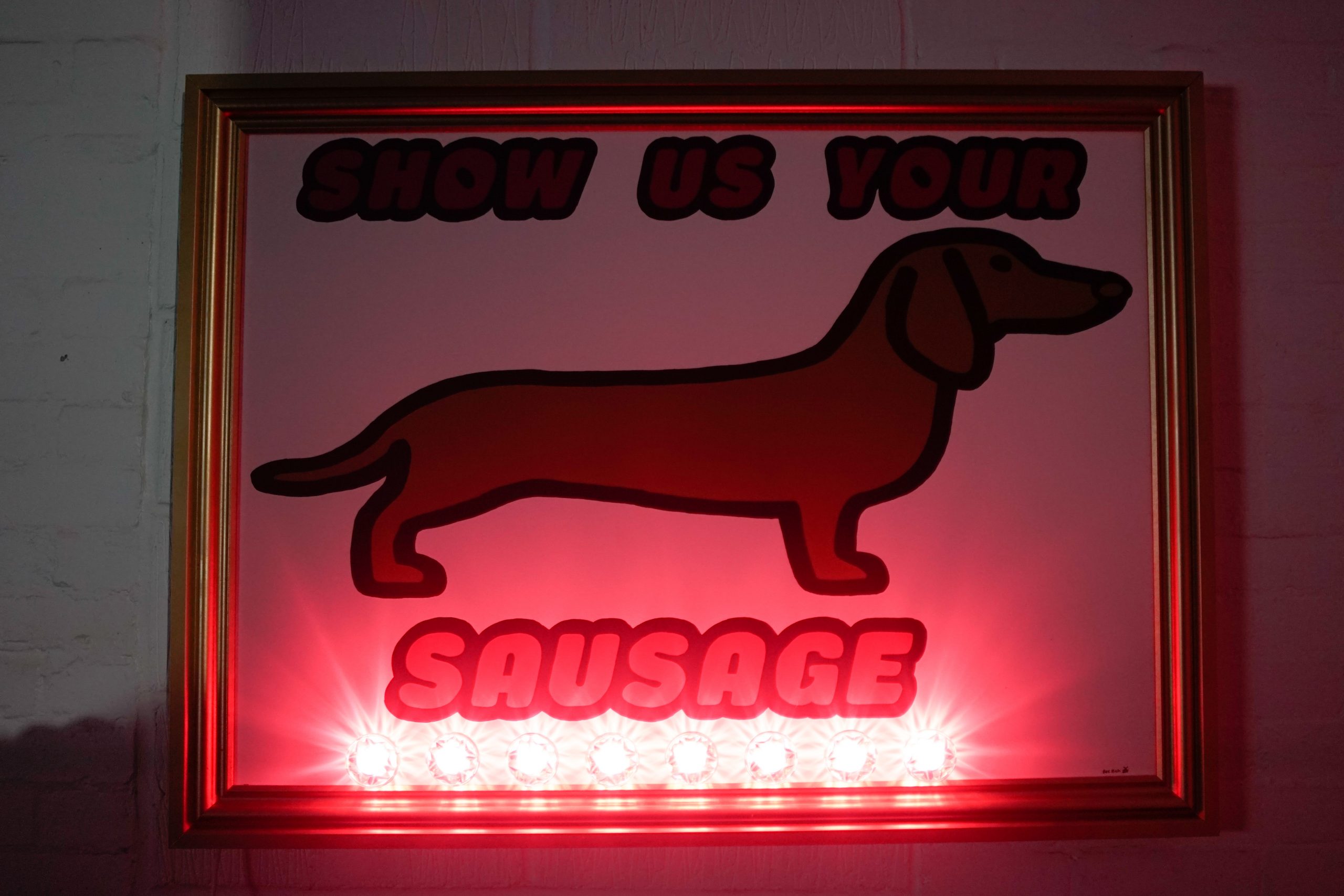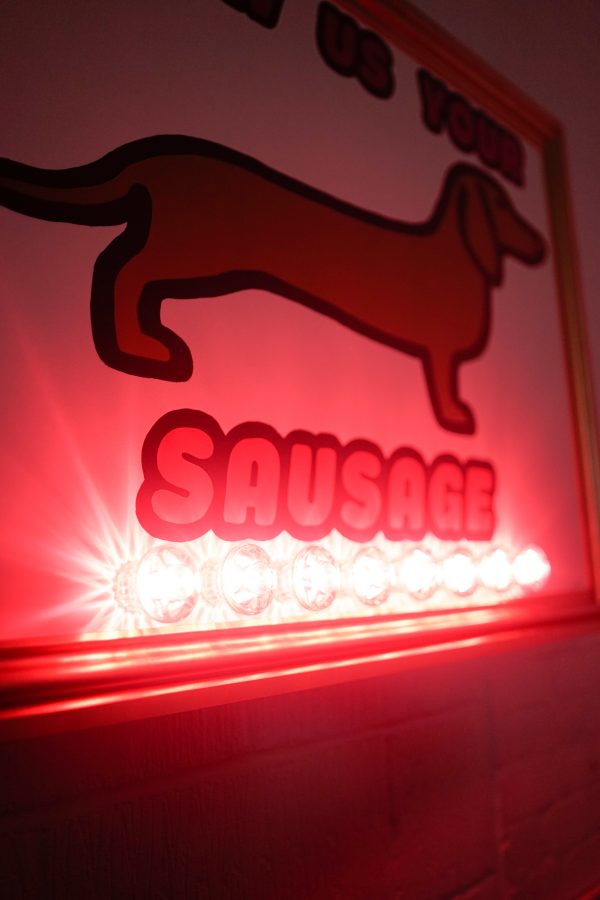 fun double entendre light up artwork featuring a dachshund dog 122 x 90 cm